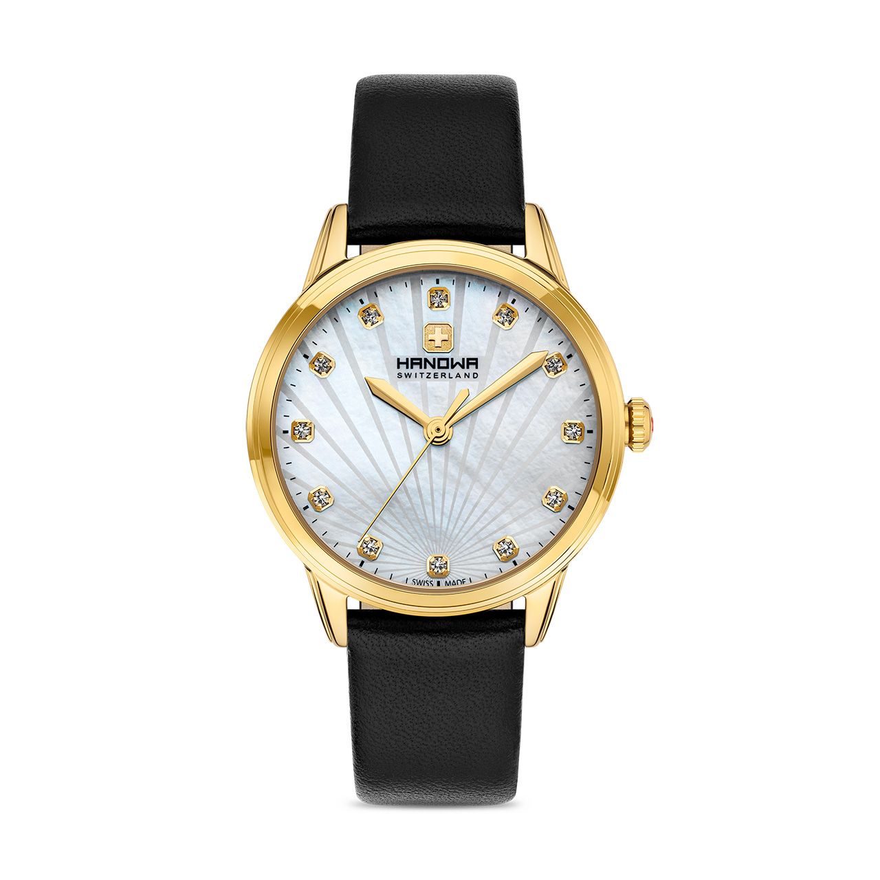 Модель ref. HAWLA0002010 в золотисто-черном дизайне на черном кожаном ремешке, гарантирует особую привлекательность и комфорт. Часы ref. HAWLG0002004 на стальном браслете с перламутровым циферблатом- сияют нежной элегантностью. Бренд HANOWA, родившийся в Швейцарии, представляет часы, оснащен механизмами ведущих швейцарских производителей. Сочетание высококачественных материалов- нержавеющая сталь и натуральная кожа, в свежих цветовых решениях, позволяет комбинировать часы с любым гардеробом!