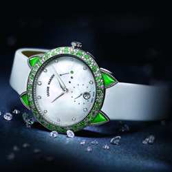 В коллекции «Jade» обработанные минералы нефрита украшают безель и очень хорошо сочетаются с изумрудами, бриллиантами и перламутровым циферблатом. Часы новой женской коллекции убедительно доказывают, что мануфактура «Ulysse Nardin» способна создавать не только принципиально новые калибры, но и весьма привлекательные коллекции часов для женщин.