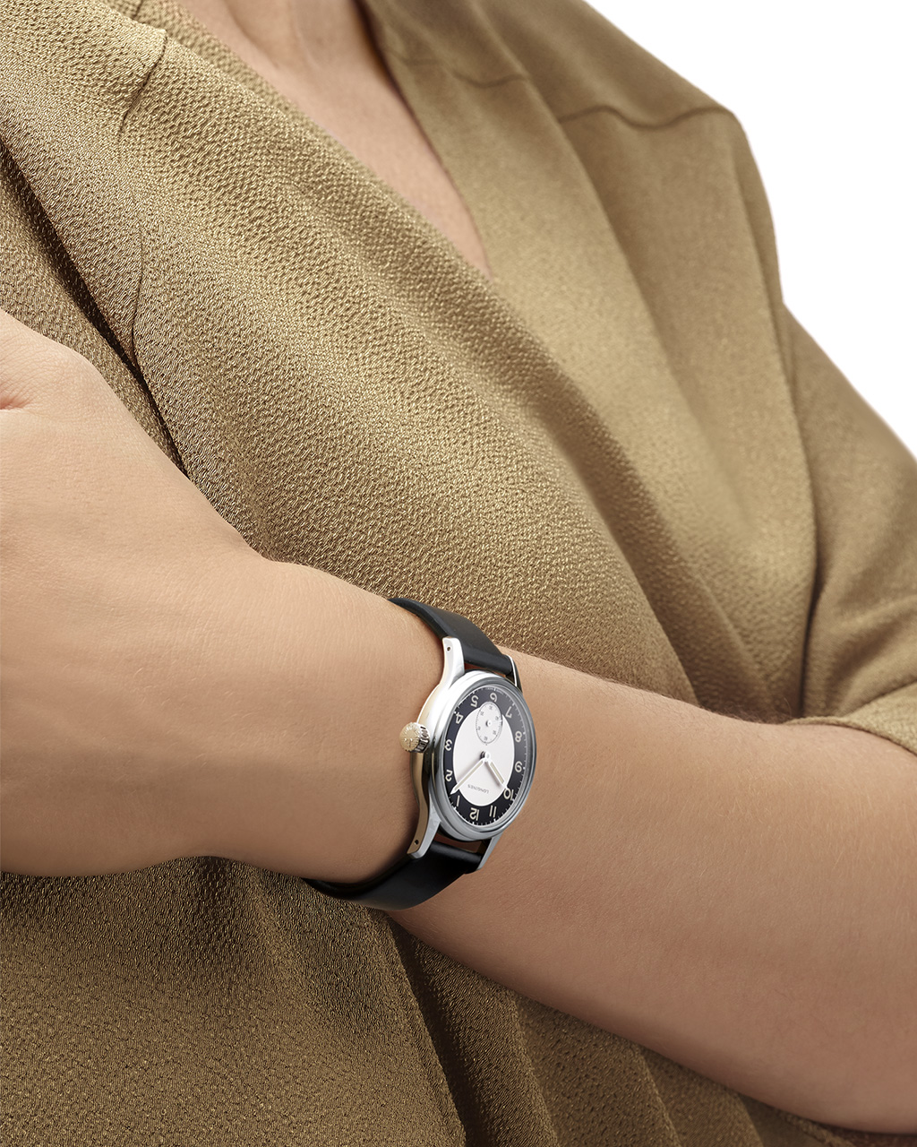 Часы The Longines Heritage Classic — Tuxedo доступны в двух версиях: модель с тремя стрелками и модель с хронографом. Отличительной особенностью первой является ее циферблат, дизайн которого был невероятно популярен в 40-е годы. В центре изысканного матового черного циферблата расположен опалово-серебристый диск с тонкими стрелками в форме палочек, покрытыми люминесцентным покрытием Super-LumiNova®. Счетчик с малой секундной стрелкой расположен в положении «6 часов». Эта деталь придает особое очарование часам диаметром 38,5 мм, корпус которых оснащен эксклюзивным механизмом L893.5 с кремниевой пружиной баланса, гарантирующей безупречное качество и невероятную точность хода.