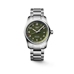 Новинка с зеленым циферблатом, оснащенная тремя стрелками и календарем, доступна в двух размерах – 40 и 42 мм. Новый цвет гармонично сочетается с бежевым покрытием Super Luminova в винтажном стиле, а пескоструйная обработка циферблата создает стильный металлизированный эффект. Как символ неизменно высокого качества механизмов Longines на циферблате модели изображены пять звезд.