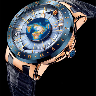 В центре циферблата - изображение нашей планеты, которая выглядит так, как если бы мы могли смотреть на неё из космоса над Северным полюсом.