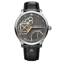 Компания Maurice Lacroix впервые в своих моделях сочетает сложную функцию с квадратным колесом и ретроградную индикацию. Само название часов – Maurice Lacroix Masterpiece Square Wheel Retrograde отражает не имеющую аналогов эстетику модели. Несмотря на авангардный характер неординарного циферблата все показания считываются максимально легко.
