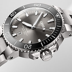 Подобные инновации характерны для творческого подхода компании Oris к часовому делу. Даже небольшие изменения могут иметь большое значение для удобства пользователя – пусть на первый взгляд эти изменения не сразу бросаются в глаза. Как и во всех часах Oris в новой модели Aquis Titanium Date задействован механический калибр. Здесь это автоматический механизм швейцарского происхождения (Swiss Made) с центральной секундной стрелкой и окошком указателя даты в положении «6 часов».