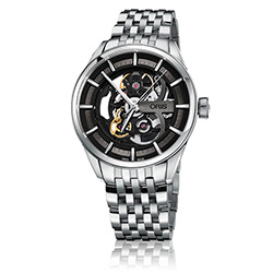 2. Модель 01 734 7714 4054-07 8 19 80 Стальной многокомпонентный корпус, скелетонированный циферблат в тёмно-серых и чёрных тонах. Многорядный браслет из нержавеющей стали с застёжкой «бабочка». |