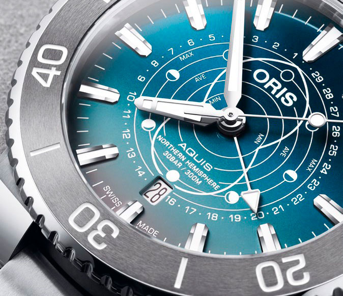 В названии часов Dat Watt Limited Edition отражено как звучит «Ваттовое море» на местном диалекте. Дизайн этой модели создан на основе дайверских часов Oris Aquis. Серия лимитирована 2009 экземплярами – такое количество выбрано в честь года, в котором Ваттовое море было удостоено статуса объекта всемирного наследия ЮНЕСКО. Dat Watt Limited Edition – особенные часы. На их циферблате с помощью функции стрелочной индикации фазы Луны (Pointer Moon) отображаются лунный цикл и диапазон приливов и отливов в Северном полушарии. Эта функция разработана Oris для профессиональных дайверов. Центральная стрелка белого цвета, правильно установленная на 29,5-дневный лунный цикл, показывает соответствующий приливный диапазон по белому контуру на циферблате. Также по этой стрелке определяется прибывающая и убывающая Луна.