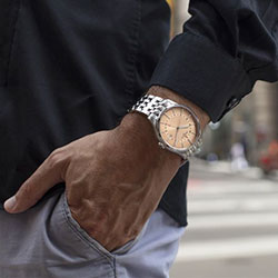 - Классическая модель с тремя стрелками и датой – элегантный и лаконичный дизайн.
