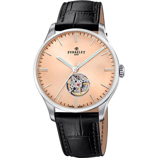 Все часы оснащены автоматическими калибрами Perrelet, разработанными в сотрудничестве с Soprod – престижной швейцарской мануфактурой. Сквозь прозрачную заднюю крышку можно наблюдать за работой механизма с изысканной отделкой.