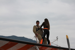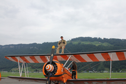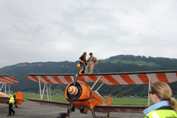 Очень зрелищным был такой вид «активности», как windwalker. Я не предполагала, что так можно делать. Суть в том, что на небольшой самолетик, на самый его верх прикреплен стул, к которому привязывают человека. Самолет взлетает, и человек летит - наверху, наслаждаясь ветром, бьющим в лицо, видами, открывающимися из-под крыльев - крыльев Breitling. Интересно, что девушки-акробатки на таких самолетах умудряются выполнять различные трюки.