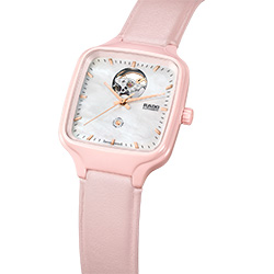 Дизайнерская коллаборация Ash Barty Limited Edition III, представляющая собой адаптацию классического True Square в фирменной высокотехнологичной керамике Rado, знаменует новые, захватывающие времена как для Эш, так и для бренда Rado. Женственные уникальные часы, которые будут радовать их владелицу днем и ночью, помещены в светло-розовый высокотехнологичный керамический квадратный корпус. Белый перламутровый циферблат с нанесенными индексами цвета розового золота придает изделию роскошный вид. А вырез открывает интригующий вид на механику часов, напоминая о тяжелой работе, стоящей за блестящим внешним видом.