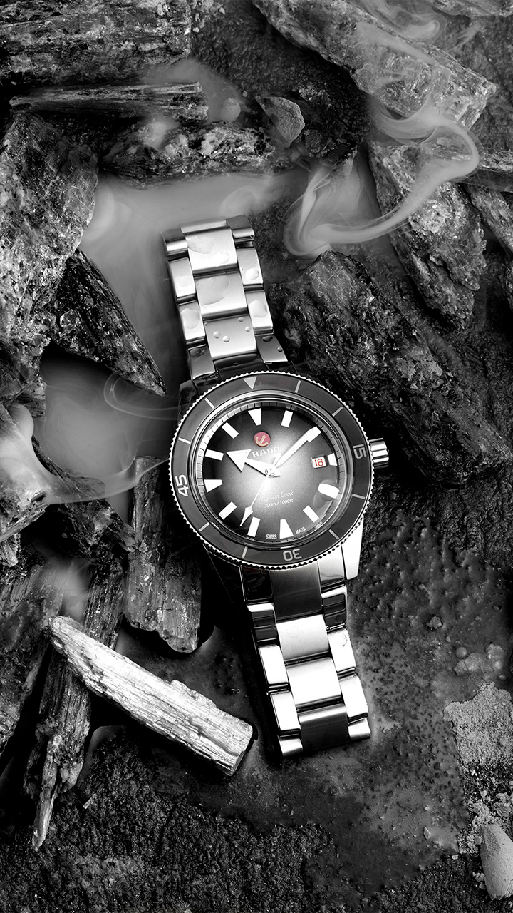 - Логотипы Rado и Captain Cook белого цвета.