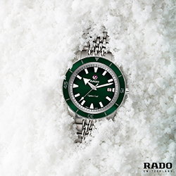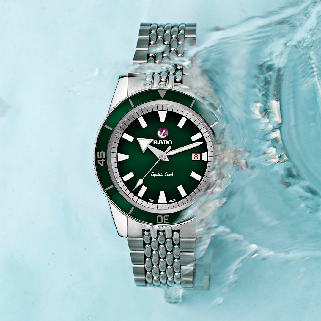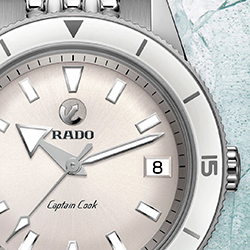 В коллекции представлены модели с синим, зеленым или белым циферблатом и безелем из высокотехнологичной керамики, который обеспечивает устойчивость к появлению царапин, а автоматический механизм обеспечивает непрерывную работу часов Captain Cook. Часы оснащены браслетом с узором «рисовое зерно» в винтажном стиле, который можно с легкостью заменить на другие ремешки благодаря системе EasyClip от Rado и придать вашему стилю индивидуальность в считанные секунды.