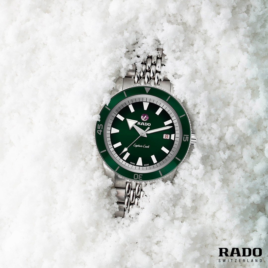 Насыщенный цвет прохладной синевы — выбор тех, кто ищет классику и стабильность. Роскошный и сочный зеленый цвет — воплощение энергии и свежести — идеальный выбор для весны. Сверкающий морозный белый цвет олицетворяет сияние и чистоту и является идеальным выбором для тех, кто любит новые начинания. Часам Captain Cook есть что рассказать о себе. Их история хранит множество рассказов, а их выносливый характер дает вам возможность понять значимость времени. Высокотехнологичные материалы и дизайн часов прошли испытание временем. Captain Cook от Rado станут верным помощником, благодаря которому вы всегда будете в нужном месте в нужное время – стоит только завести свои часы!