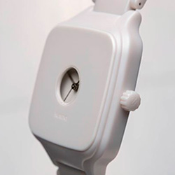 Однако вдохновением для такого дизайна послужили не только карманные часы, но также название самого дизайнерского дуэта — Formafantasma (ит.— фантомный образ). Облик часов создан как за счет конструкции монохромного светло-серого цвета, так и практически неосязаемого присутствия циферблата, видимого через небольшое окошко.