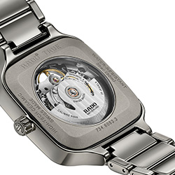 Стрелки и указатели выполнены в цвете розового золота на черном корпусе, серебристом на плазменном и желто-золотом на белой модели. Все три версии защищают циферблат плоским сапфировым стеклом с антибликовым покрытием на обеих гранях. А сапфировое стекло, встроенное в обработанную пескоструйной обработкой титановую заднюю крышку корпуса, обеспечивает дополнительный обзор нового автоматического калибра Rado R808. Он оснащен антимагнитной пружиной NivachronTM для повышения устойчивости к ударам, колебаниям температуры и магнитным полям, а также имеет 80-часовой запас хода. Тестирование в пяти различных положениях подтверждает встроенную точность часов.