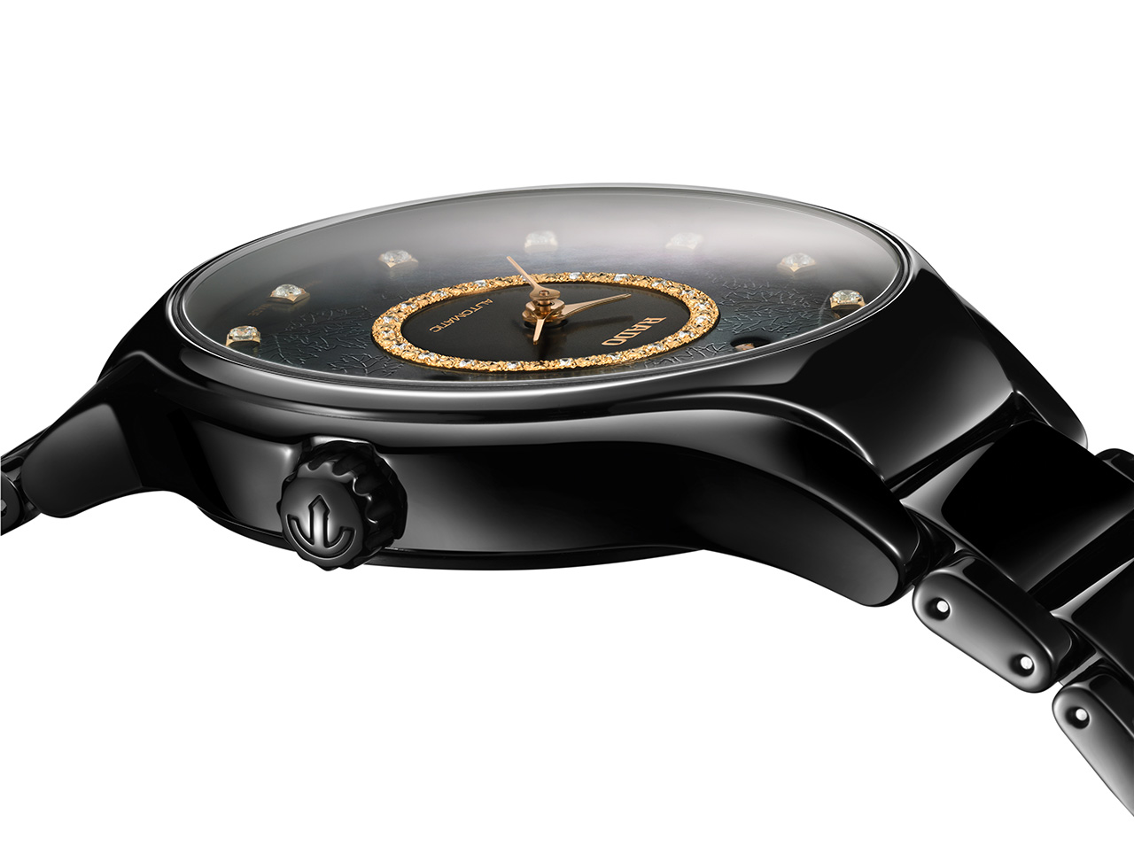 - Заводная головка из полированной высокотехнологичной керамики черного цвета.