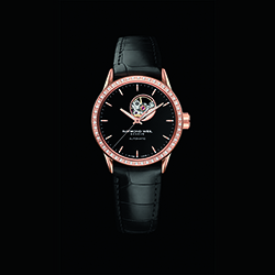 Изящная женская модель представлена в стальном полированном корпусе диаметром 29 мм и толщиной 8,85 мм с PVD-напылением из розового золота и инкрустацией 50 бриллиантами. Боковая сторона корпуса в направлении «3 часа» имеет рифлёную заводную коронка из полированной стали с PVD-покрытием розовым золотом, украшенную фирменным логотипом «RW». Лицевая сторона корпуса защищена сапфировым стеклом с двусторонним антибликовым покрытием, а тыльная сторона корпуса закрыта завинчивающейся задней крышкой с сапфировым стеклом. Водонепроницаемость корпуса составляет 5 атм. (50 м). Часы оснащены автоматическим механизмом «RW 2000» на 25 камнях с открытым балансом. Механизм обеспечивает функции часов, минут и секунд. На чёрном глянцевом циферблате помещены часовая, минутная и секундная центральные люминесцентные стрелки выпуклой формы с PVD-покрытием розовым золотом, условные часовые индексы с таким же покрытием, а также отверстие круглой формы, открывающее обзор баланса. Часы комплектуются чёрным ремешком из крокодиловой кожи, снабжённые стальной складной застёжкой покрытой PVD-напылением из розового золота и двойной системой блокировки.