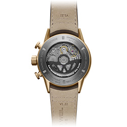 Со временем бронза покрывается патиной и принимает новый оттенок, что придает еще более элегантный вид модели. Задняя крышка часов выполнена из нержавеющей стали. Механизм часов калибр RW5030 виден через открытую заднюю крышку. Дополнительным выражением внимания к деталям является W-образный скелетонизированный ротор – это отсылка к фамилии основателя. Еще одна особенность автоматического механизма заключается в его увеличенной производительности примерно 56 часов.