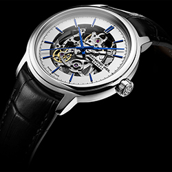 Запас хода Skeleton из коллекции Maestro составляет 38 часов, водонепроницаемость — до 50 м. Крепление новых часов представлено в двух вариантах: браслетом из нержавеющей стали или ремешком из натуральной кожи. И тот, и другой снабжены складной застежкой с двойной фиксацией.