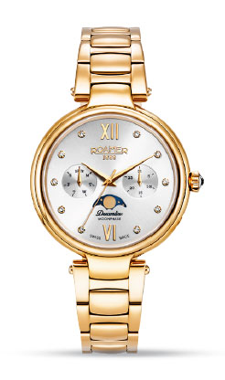 Модель Dreamline Moonphase от Roamer of Switzerland олицетворяет утонченную женственность и гармоничное сочетание классики с современными деталями. Перламутровый циферблат с сияющими камнями и элегантной луной добавляют изящества этому украшению.