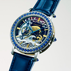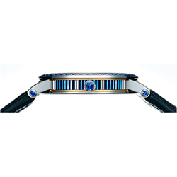 - Инкрустирован 48 сапфирами (3,22 карат, включая сапфиры в дужках и заводной головке).