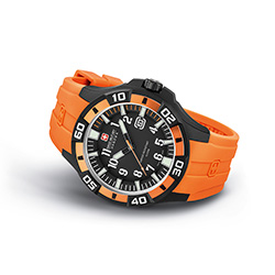 4. Swiss Military Hanowa Navy Bermuda 06-4292.27.007.79 Корпус из нержавеющей стали с покрытием из поликарбоната чёрного цвета, оранжевый безель. Чёрный циферблат с белыми цифрами и оранжевой секундной стрелкой. Силиконовый ремешок оранжевого цвета. |