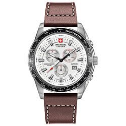 1. Swiss Military Hanowa Crusader Chrono 6-4225.04.001: корпус из нержавеющей стали 316L, безель с чёрным ионным покрытием и тахиметрической шкалой, белый циферблат с часовыми индексами стального цвета, коричневый кожаный ремешок с белой прострочкой. | |