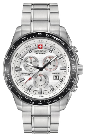 5. Swiss Military Hanowa Crusader Chrono 6-5225.04.001: корпус из нержавеющей стали 316L, безель с ионным покрытием чёрного цвета и тахиметрической шкалой, белый циферблат с часовыми индексами стального цвета, браслет из нержавеющей стали. | |