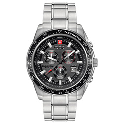 9. Swiss Military Hanowa Crusader Chrono 6-5225.04.007: корпус из нержавеющей стали 316L, безель с ионным покрытием чёрного цвета и тахиметрической шкалой, чёрно-серый циферблат с часовыми индексами серого цвета, браслет из нержавеющей стали. |