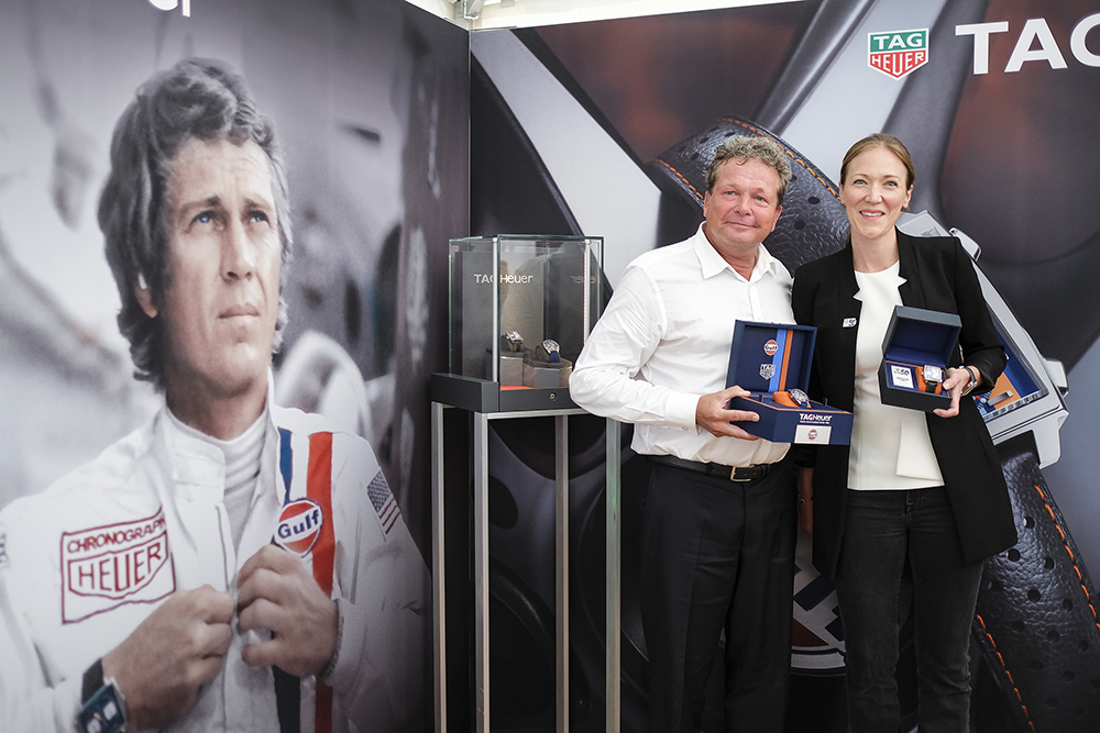 В преддверии празднования 50-летия со дня первой победы команды Gulf в гоночной серии «24 часа Ле-Мана» мануфактура TAG Heuer организовала в Монако коктейльную вечеринку, проходившую среди старинных автомобилей из частной коллекции его светлости князя Монако Альбера II. На мероприятии присутствовали актер и посланник марки TAG Heuer Патрик Демпси, почетный президент часового бренда Джек Хойер, принцесса Монако Стефания с детьми – Полиной и Луи Дюкрюэ, Санджай Хиндужа из Gulf Oil и Роальд Гете, владелец команды ROFGO Racing. Гостям предоставлена возможность проехать по трассе Вар в г. Ле-Люк за рулем копии модели Ford Gt 40, одержавшей первую победу 50 лет назад.