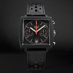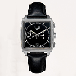 В 1971 году часы Monaco попали на большой экран благодаря Стиву Маккуину в фильме «Ле-Ман». В середине 70-х годов эта модель обрела новый облик. В то время черный цвет только входил в моду, поэтому Monaco получили черный анодированный корпус. Известная как «Темный Властелин», эта хрупкая и редкая модель завораживала – она и по сей день остается желанным объектом для коллекционеров. Первая глава истории модели Monaco заканчивается в конце 70-х годов.