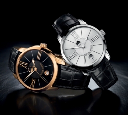 Итак, мужская версия новой коллекции «Classico Luna» предстаёт перед нами в круглом корпусе диаметром 40 мм, выполненном из высококачественной стали или розового золота (18 карат) и выделяется своей подчёркнутой простотой. Диаметр корпуса женской версии, такой же формы, чуть меньше – 35 мм, но материал изготовления – только розовое золото (18 карат), к тому же рант и ушки корпуса инкрустированы 60 бриллиантами, вес которых составляет 1,2 карата. Обе версии оснащены фирменным автоматическим механизмом калибра «UN-829» с запасом хода на 42 часа.