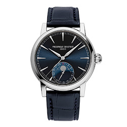 Флагманская модель Classic Moonphase Date Manufacture вышла в трех новых версиях. Стрелки парят над циферблатом в стальном корпусе диаметром 40 мм с изысканным «солнечным» гильоше, который представлен в сверкающем серебристо-сером, глубоком и современном темно-синем или оригинальном ярко-зеленом. Минутная шкала выполнена в стиле «железной дороги», а заводная головка имеет форму луковицы. Стрелки приводятся в движение новым механизмом FC-716 собственной разработки бренда с 72-часовым запасом хода. Теперь на механизме вместо прежних круговых мотивов появился волнообразный узор «Côtes de Genève». Его можно созерцать сквозь прозрачную заднюю крышку, обладающую водонепроницаемостью до 50 м (5 бар).